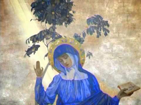 Слова «радуйся, Благодатная! Господь с Тобою; благословенна Ты между женами», которые, согласно евангельскому рассказу, произнес архангел, приветствуя Марию, вошли в церковную практику как молитва «Богородице Дево, радуйся» или «Аве Мария».