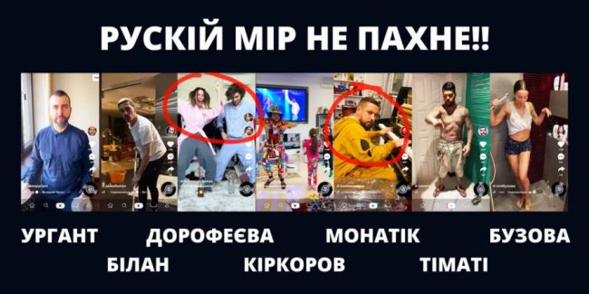 Сьогодні низка «українських» гастролерів в черговий раз показали на чиєму вони боці. На шостому році війни вони беруть участь в рашистських роликах та легітимізують агресора в Україні, адже мають велику кількість прихильників тут», — йдеться у дописі.