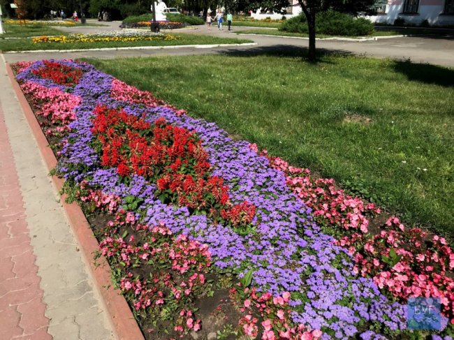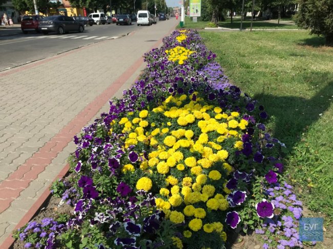 Над озелененням працює чотири жінки. Дві висаджують, прополюють та поливають квіти. У ВУКГ є спеціальна поливальна машина. У спекотні дні підливати клумби необхідно чи не через день.