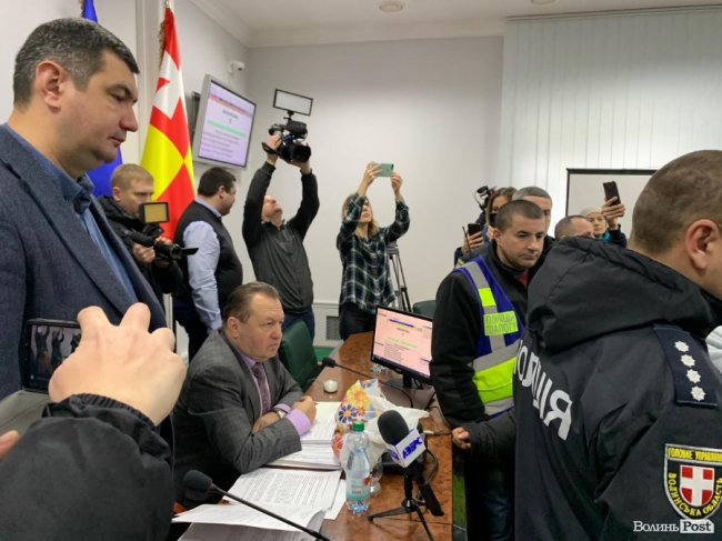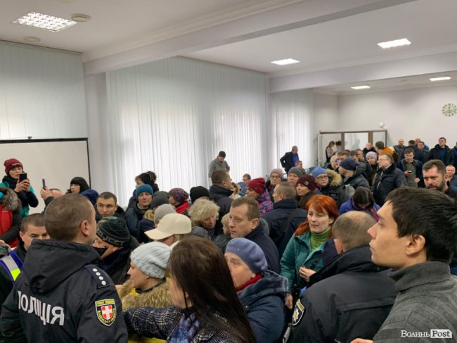 Частина мітингувальників, яких зібралися сотні під стінами Луцькради, зайшла до зали, де відбувається засідання виконкому.