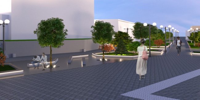 Повністю оновити пропонують площу. На її центральній частині розмістити пішохідний фонтан, по периметру — місця для відпочинку, поєднані з озелененням та освітленням.