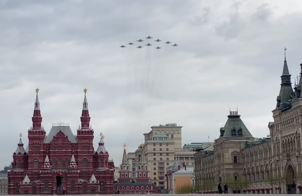 Время начала воздушного парада пока называется примерное — ориентировочно 10.10 плюс-минус несколько минут. Почему так? Все будет зависеть от речи президента Владимира Путина, которая начнется в 10.00. А вот сколько именно она продлится, точно пока никто не скажет, тем более, что и обращение будет не совсем обычным, учитывая обстановку.