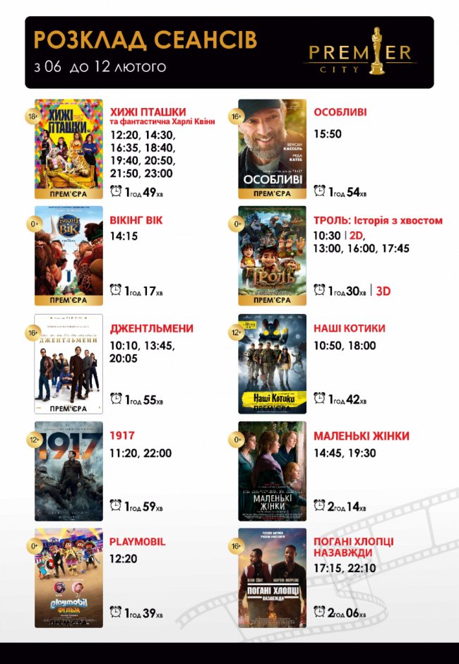 Із 6 лютого в кінотеатрі «PremierCity» оновився розклад сеансів.