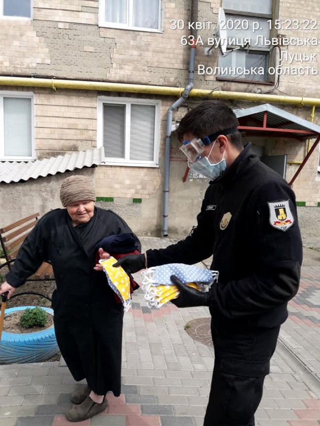 Лучанка Олена Ксензюк виготовила сотні масок і передала їх інспекторам муніципальної варти, аби ті роздали їх людям, які потребують захисту від небезпечного вірусу Covid-19 в першу чергу.