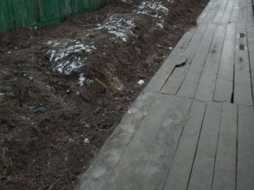 «Дерев’яна огорожа автостоянки також має не дуже естетичний вигляд, вздовж насипи землі. Прошу відреагувати на зауваження та зобов’зати власника автостоянки, а також тих, у чиєму підпорядкуванні знаходиться тротуар, привести все до належного стану та прибрати багаторічні насипи землі, зробити нормальний та безпечний тротуар і встановити огорожу, яка не буде лякати своїм виглядом», – звернулася лучанка.