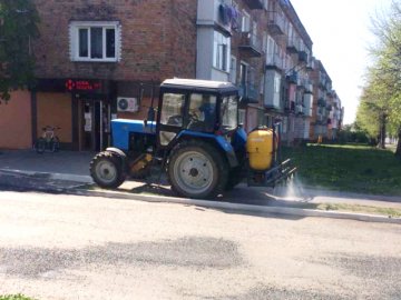 У Нововолинську 29-го квітня продезінфікували 20,5 кілометрів тротуарів та доріг. На це витратили 8 літрів дезрозчину та 1600 літрів води.